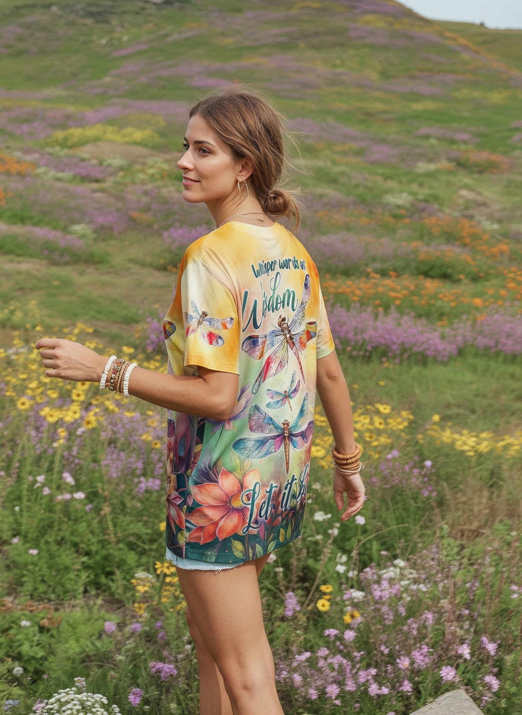 🌿 Whisper of Wisdom – Dragonfly Lotus T-Shirt ✨
