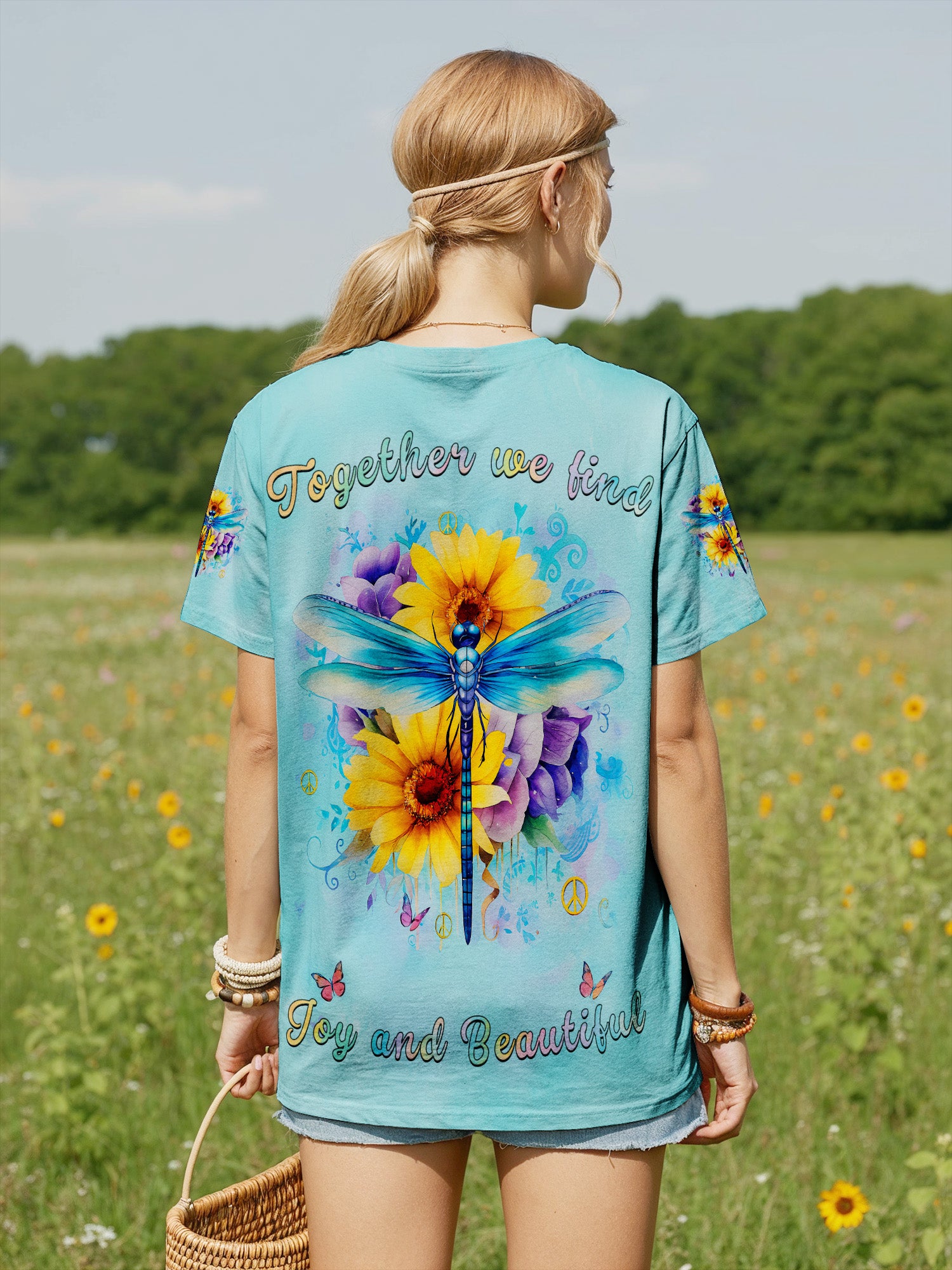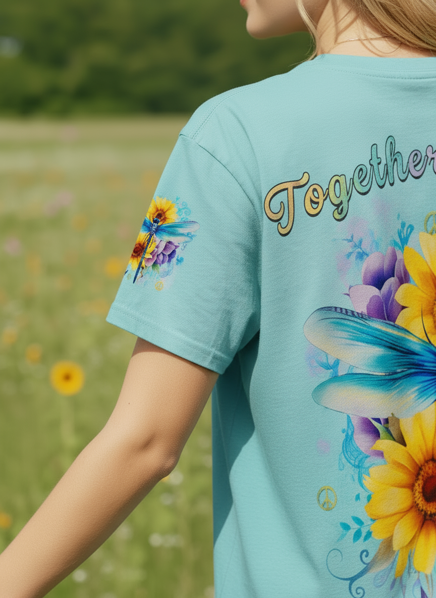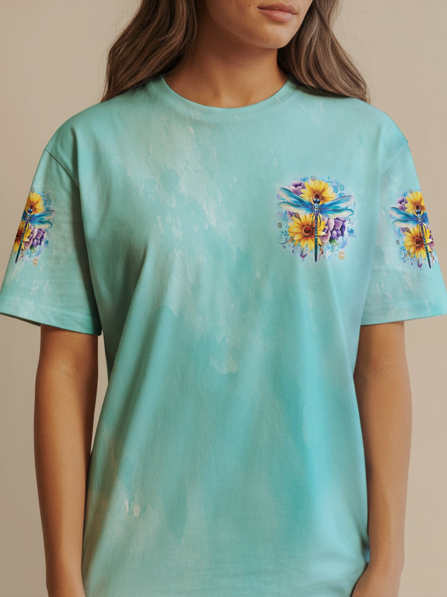 The Lullaby tee is a soft hymn to peace and harmony. With radiant sunflowers, a glowing dragonfly, and the calming words “Just Breathe, Everything is Going to be Okay”, it carries the spirit of reassurance wherever you go.