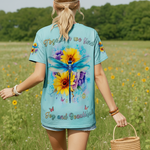Set against a dreamy sky-blue canvas, this all-over print design blends nature’s beauty with a gentle hippie vibe — perfect for free souls who find comfort in light, rhythm, and simple joys.