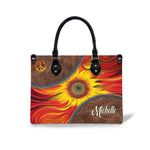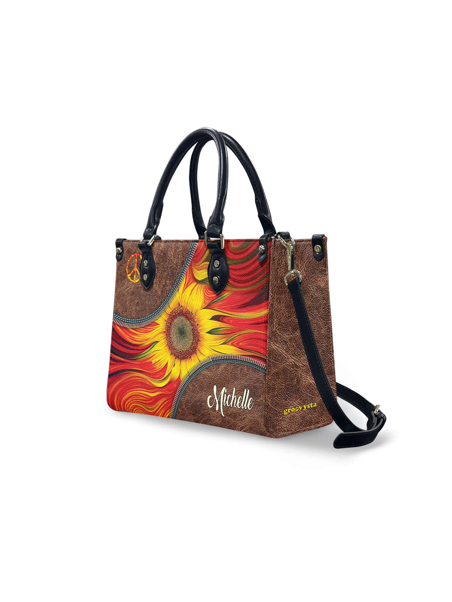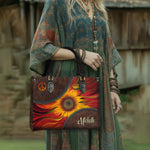 This handbag is soft leather embodying the free spirit, spacious enough to carry essential items like philosophical works or notebooks for creative expression , and a 13'' laptop or tablet, mala beads and healing stones , along with round-framed sunglasses , even a small musical instrument (like a harmonica or flute) to inspire spontaneous creativity.