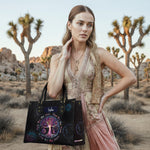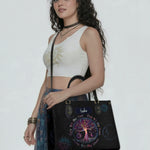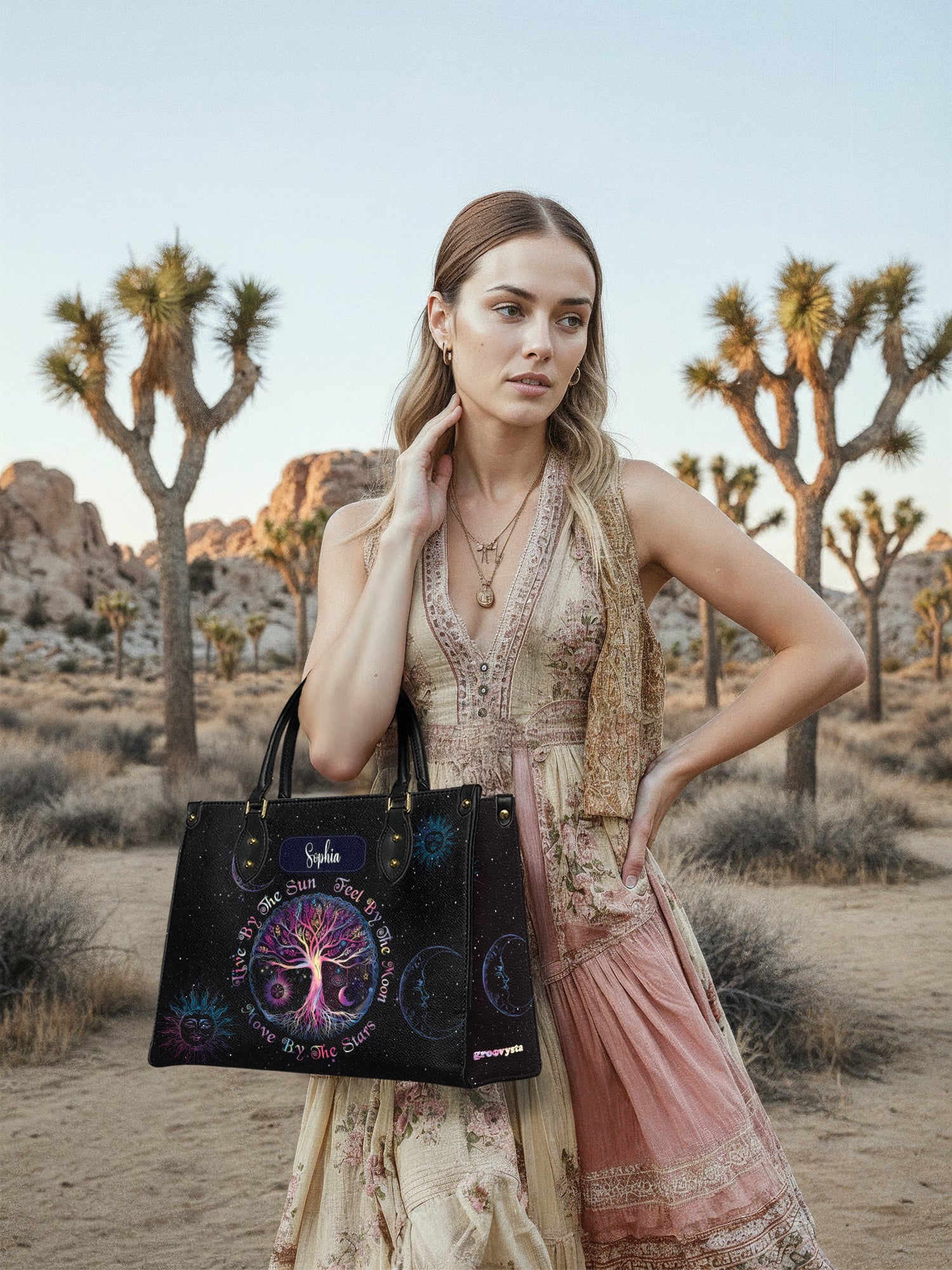 This handbag is soft leather embodying the free spirit, spacious enough to carry essential items like philosophical works or notebooks for creative expression , and a 13'' laptop or tablet, mala beads and healing stones , along with round-framed sunglasses , even a small musical instrument (like a harmonica or flute) to inspire spontaneous creativity.