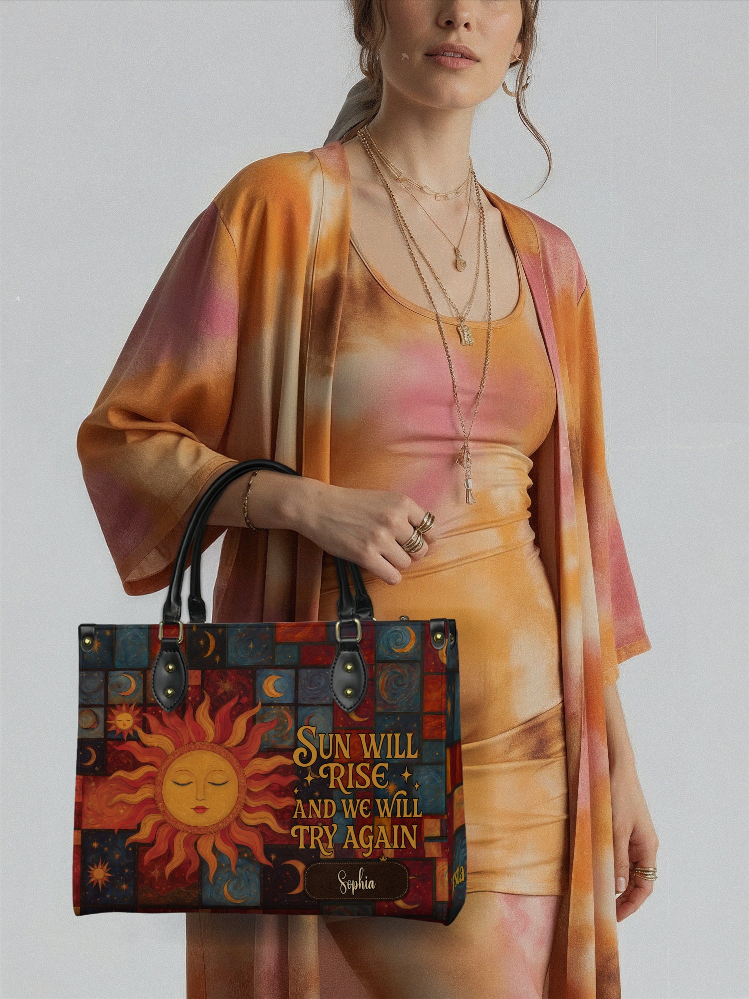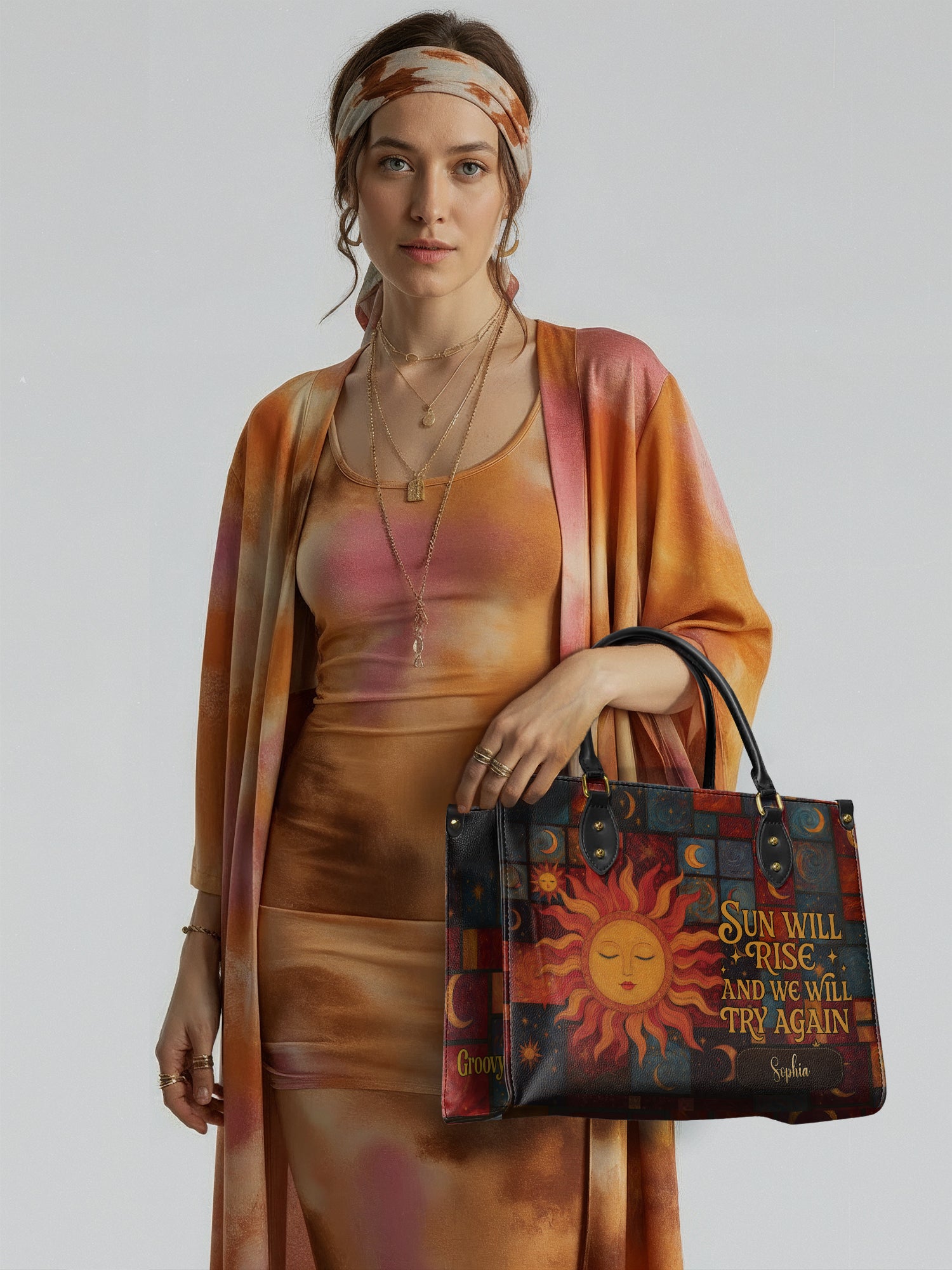 This handbag is soft leather embodying the free spirit, spacious enough to carry essential items like philosophical works or notebooks for creative expression , and a 13'' laptop or tablet, mala beads and healing stones , along with round-framed sunglasses , even a small musical instrument (like a harmonica or flute) to inspire spontaneous creativity.