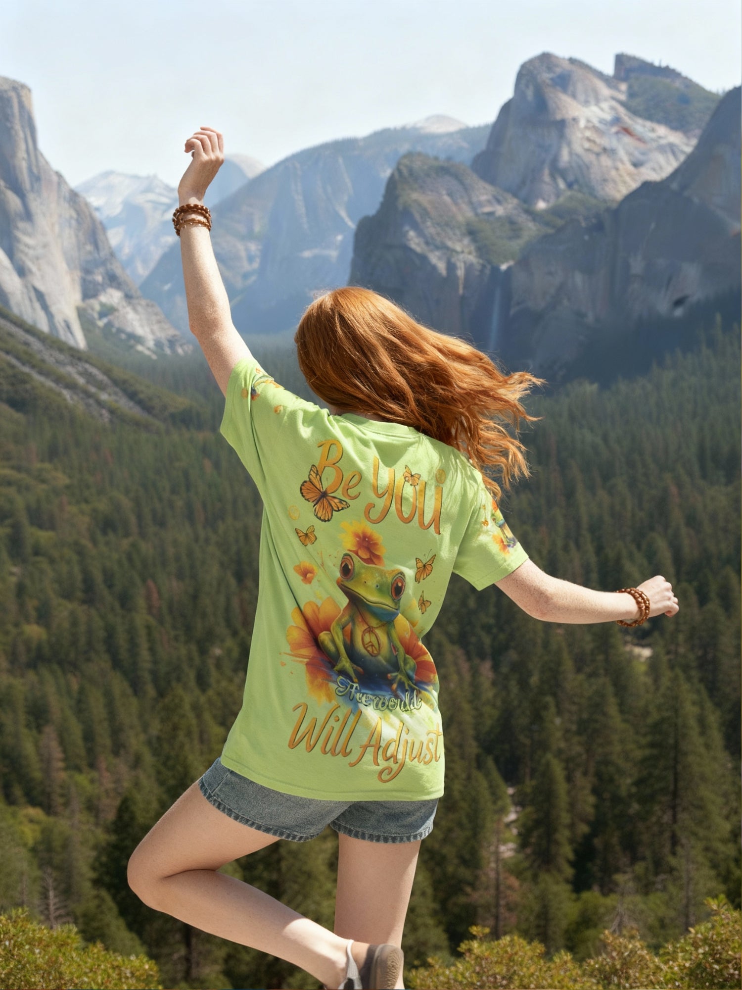 Step into your true self with the Stay Groovy Frog tee – where peace, playfulness, and nature meet. This vibrant design features a cool frog wearing a peace sign, surrounded by sunflowers and butterflies, with the uplifting message: “Be you, the world will adjust.”