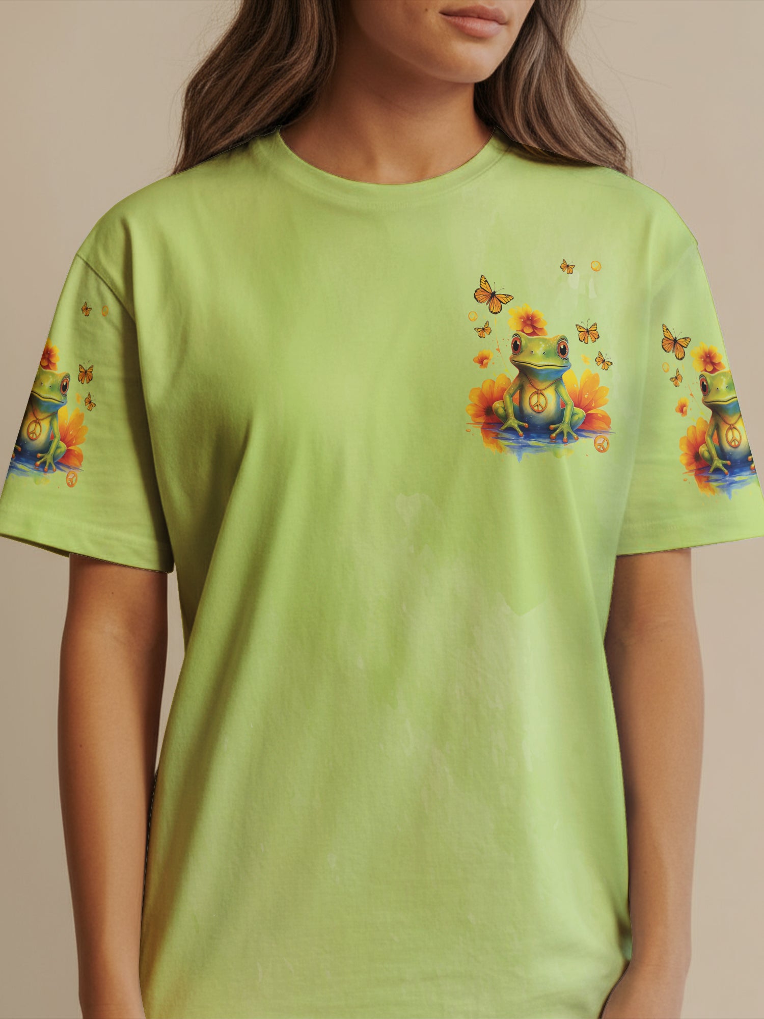 🐸 Stay Groovy Frog – Hippie All-Over Print T-Shirt 🌻✨
